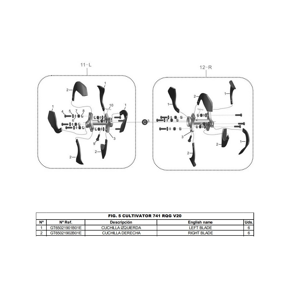 Couteau droit pour rotobineuse GARLAND 741RQG-V20
