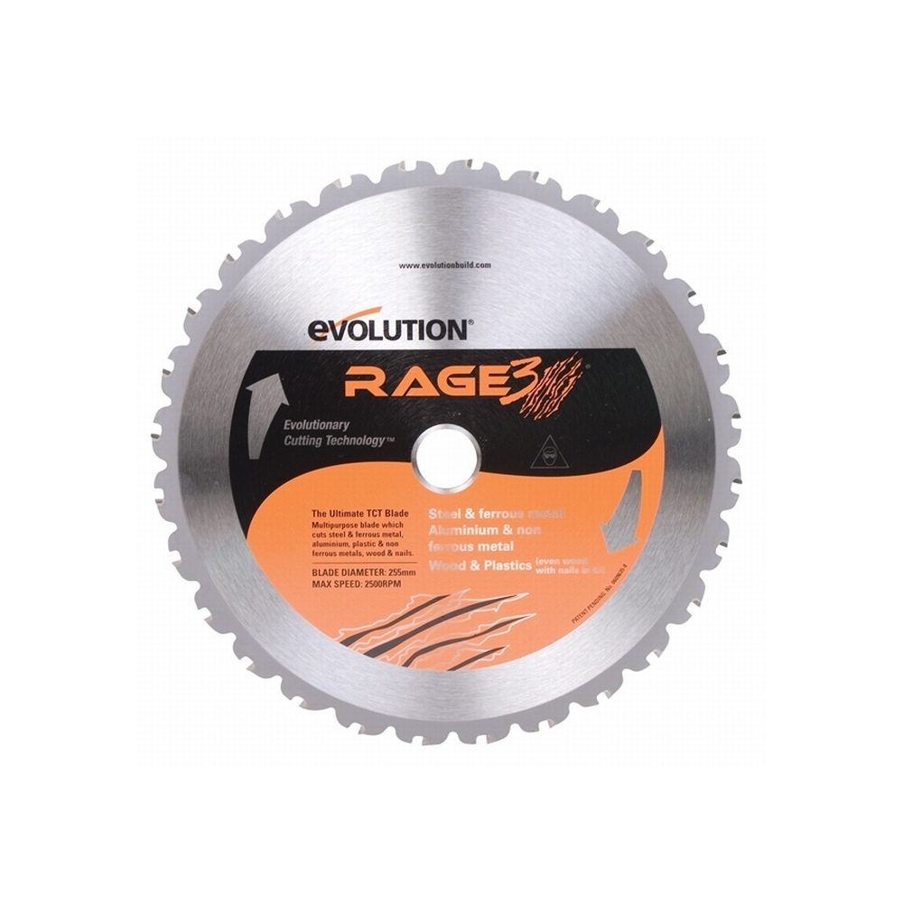 Lame de remplacement pour la scie à onglet multifonctionnelle RAGE3 255 mm. La technologie avancée TCT permet la coupe de l'acier, de l'aluminium et du bois (même avec des clous) avec la même lame.