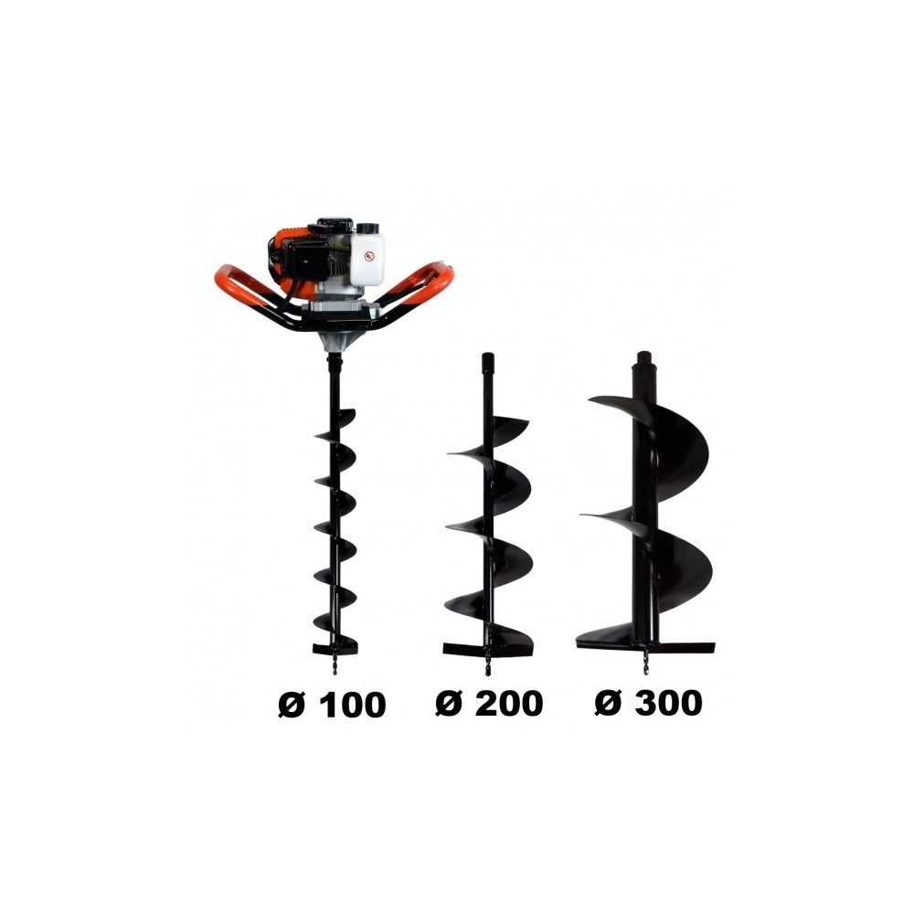 Tarière thermique 52 cm3, 3 CV + lot de 3 mèches (100, 200 et 300 mm)
