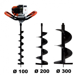 Tarière thermique 52 cm3, 3 CV + lot de 3 mèches (100, 200 et 300 mm)
